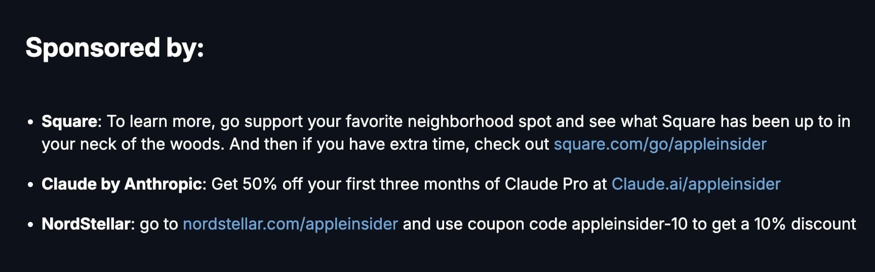 The AppleInsider podcast discussing Apple Vision Pro featured Claude alongside other sponsors, giving listeners access to the discount at claude.ai/appleinsider with a 50% off deal for 3 months.