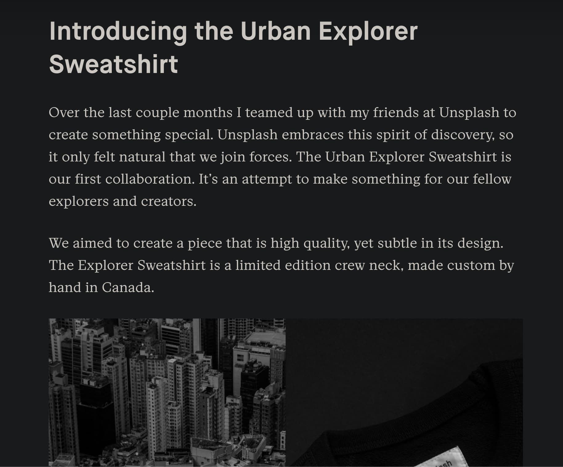 You can see the depth of this partnership in his blog post, Introducing Unsplash x Van Schneider.