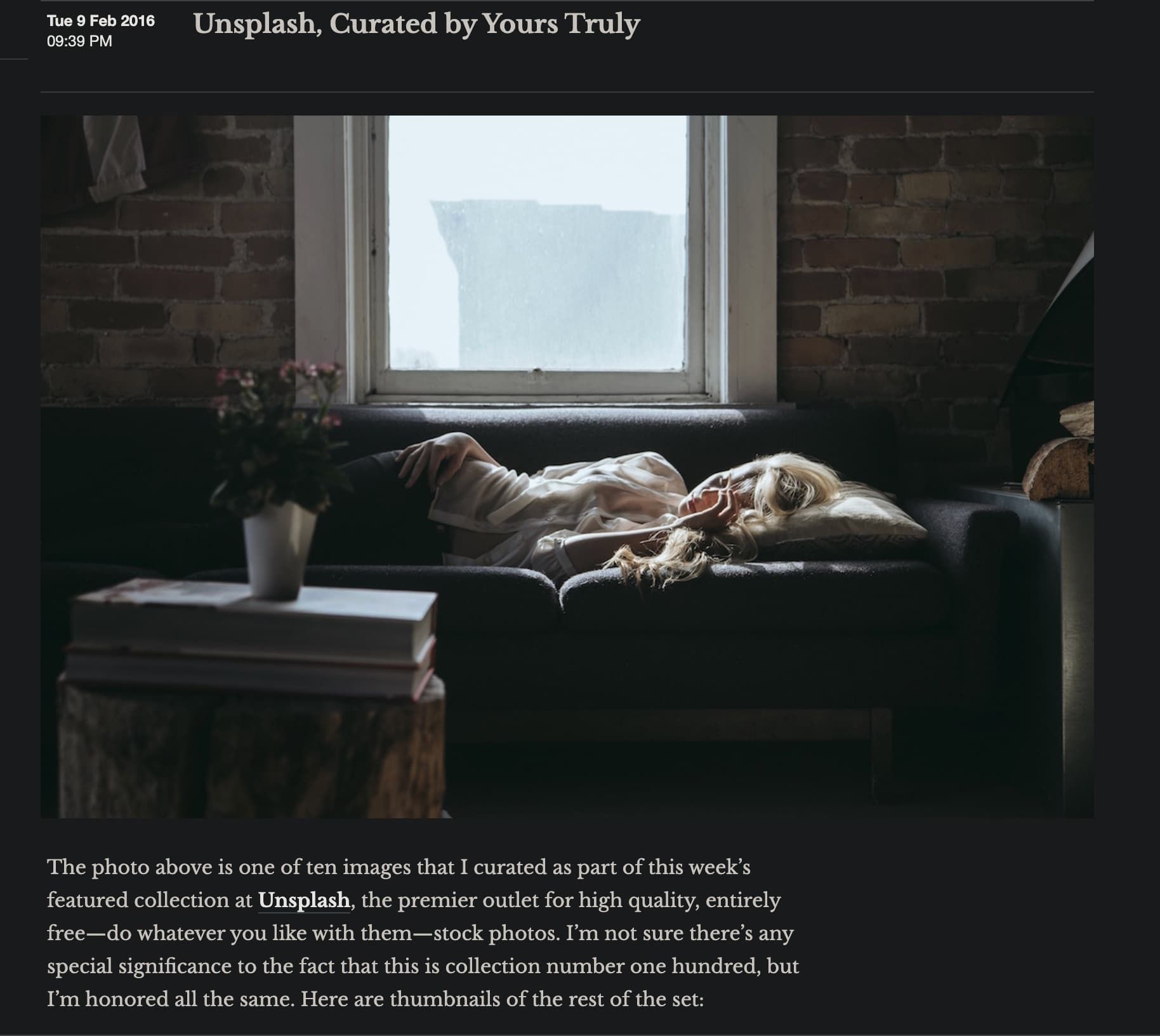 "My Unsplash collection is just a faint echo of that one but it does have the very nice benefit of being yours to do whatever you like with."