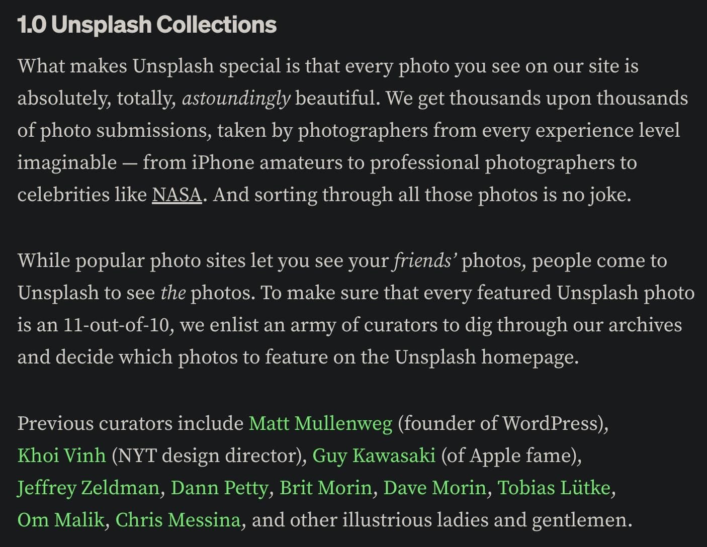 He linked directly to his collection. He drove his audience of high-level designers right to Unsplash's front door.