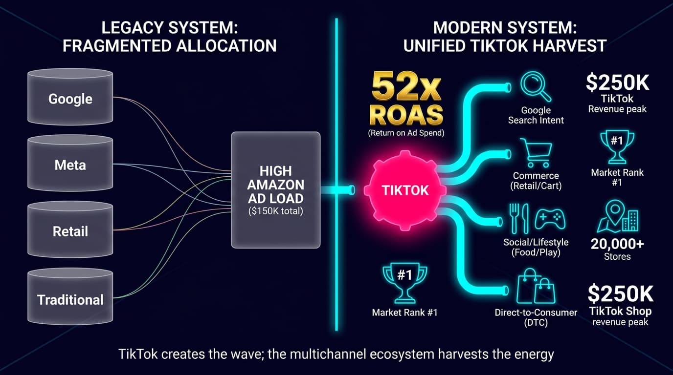 Most brands run their marketing in silos. TikTok team. Google team. Amazon team. Each one with its own budget, its own ROAS target, its own optimization loop.
