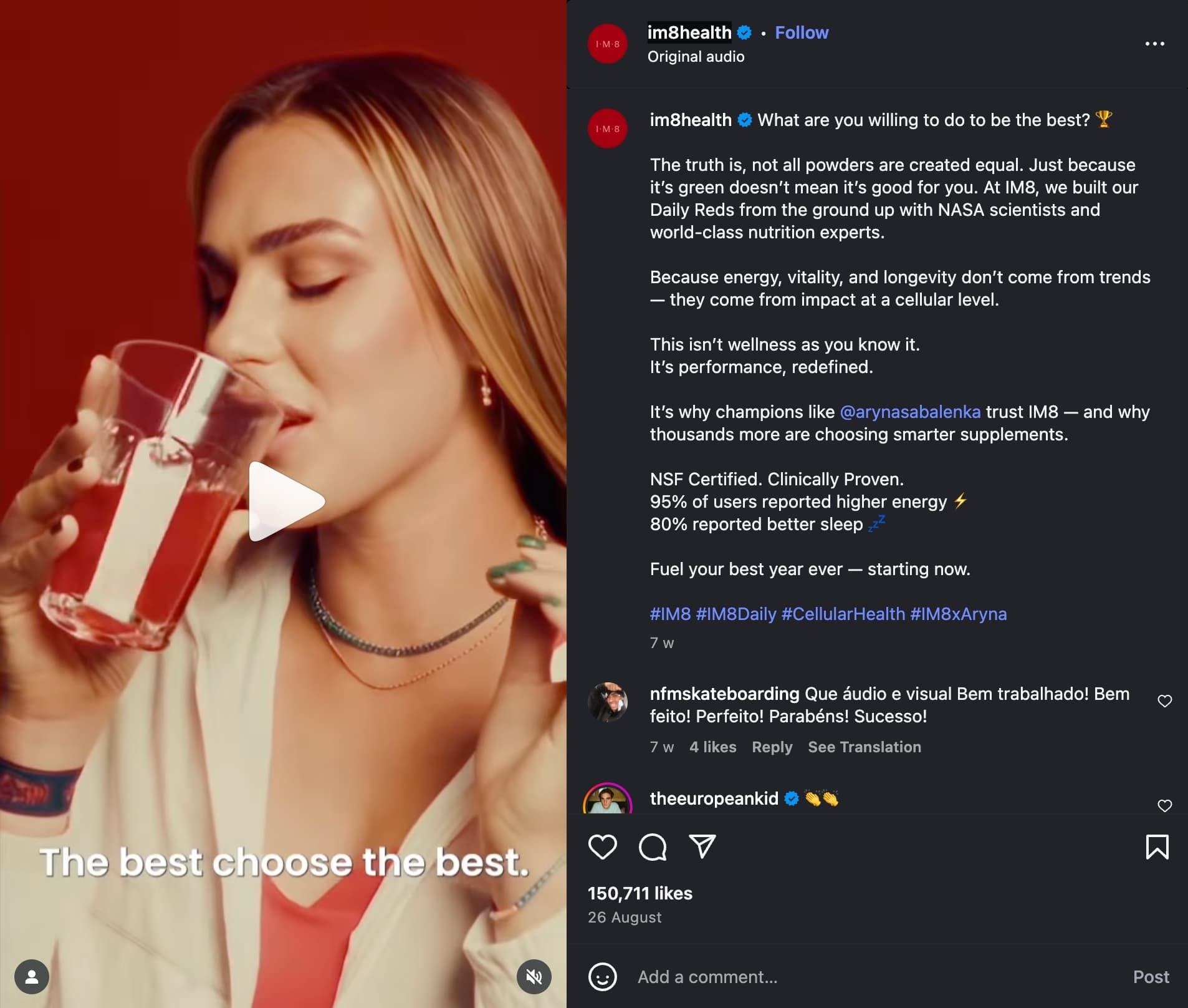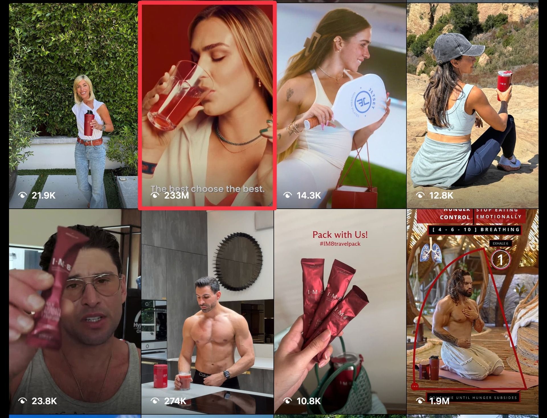 Viral AI ads for IM8 showing 233M views from VEO3 prompts